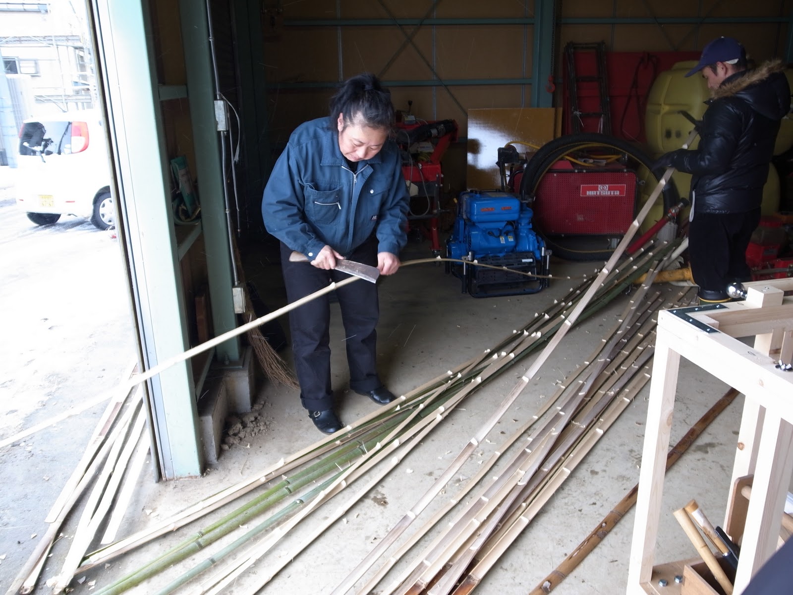 竹は4mの長さの竹を間瀬からトラックで運びました。