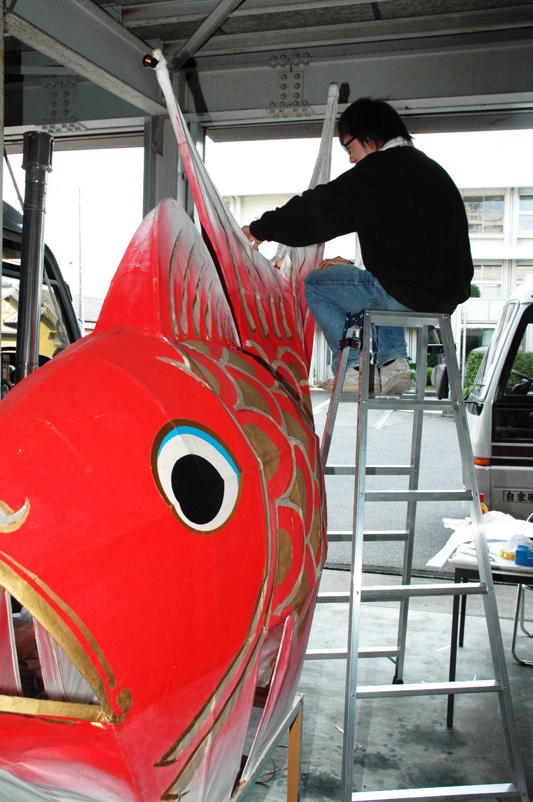 これは2005年に3mの鯛車を 修復しているところです。 |