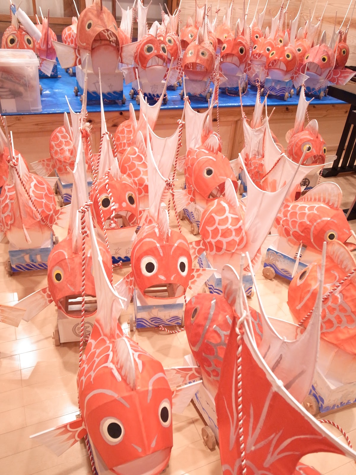 | 越前浜から蔵に鯛車を運んで来たらこんなことに!! なかなかめでたい感じですね。大集合みたいなね。 |