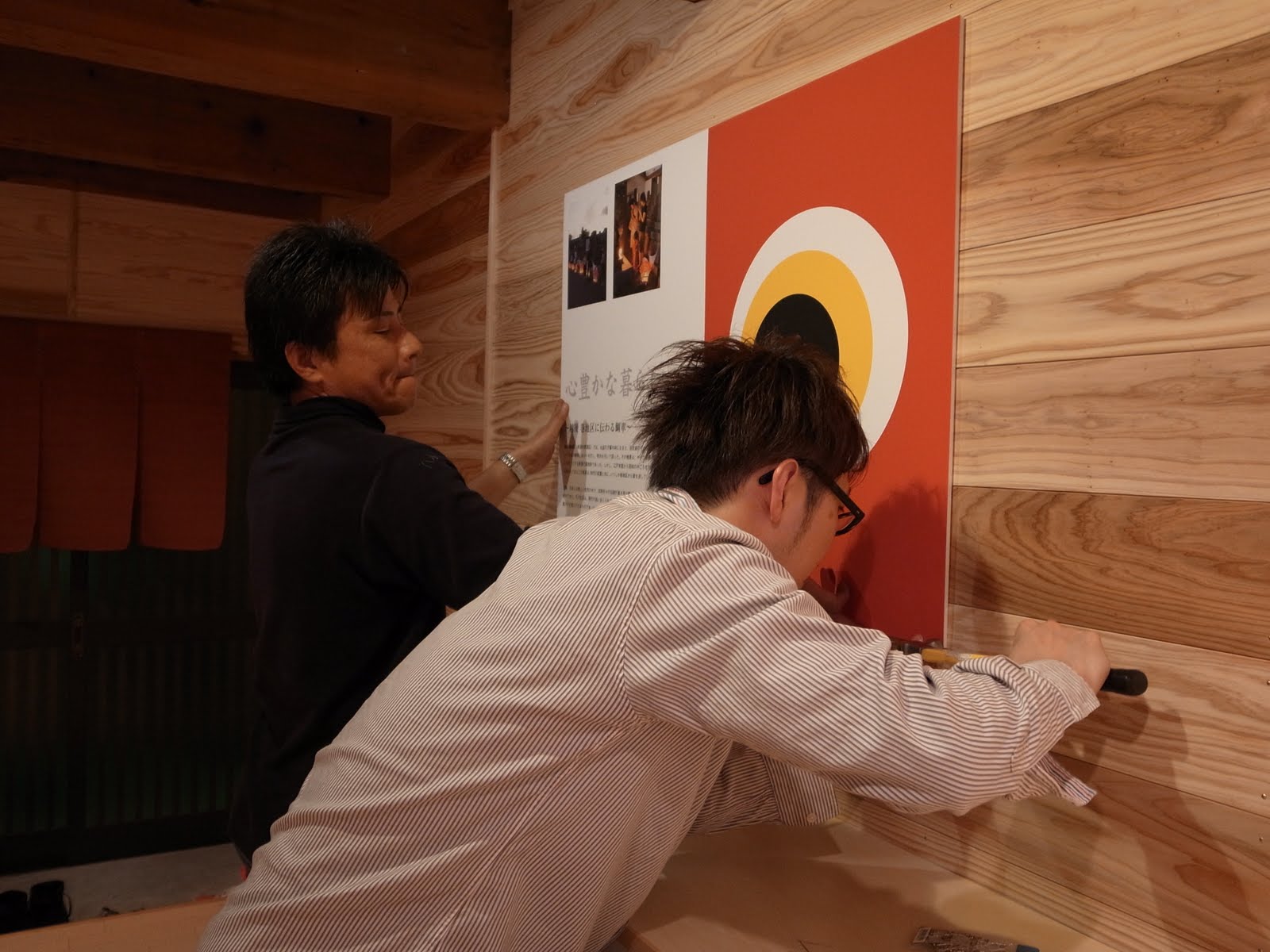 | パネルも良い感じにつきました! 右が巻の6人の鯛車達人の紹介パネルです。 下に達人たちの鯛車がそれぞれ並ぶ予定です。 |