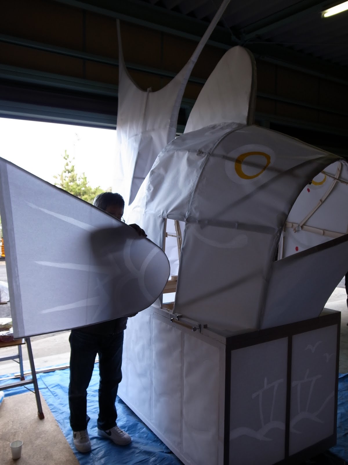 今日は午前中、巨大鯛車の絵付けが行われました。