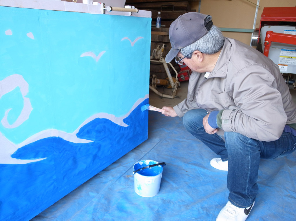 4m鯛車の色塗りをしています。