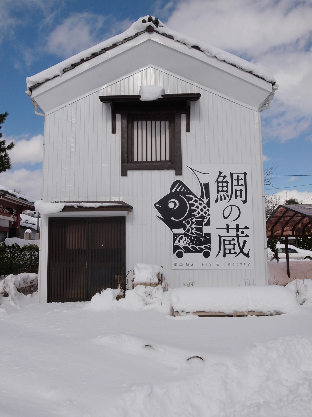 | 蔵も地面の雪と同化して 真っ白です。 |