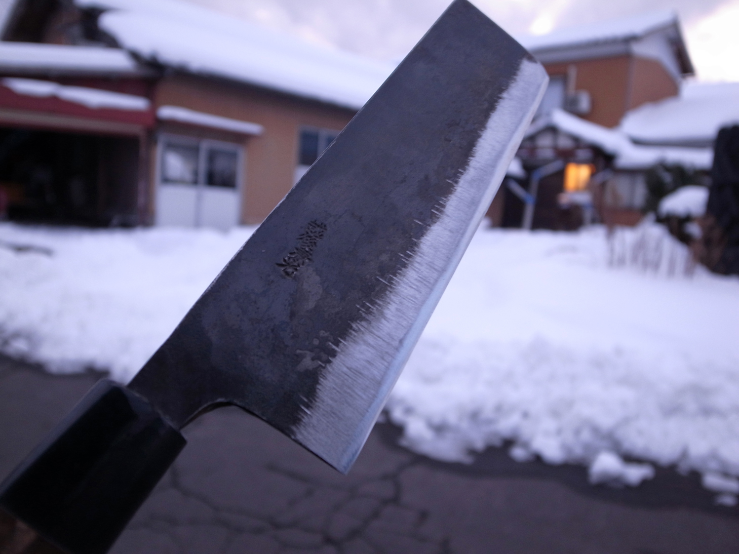 | この包丁は何年か前に袖山さんからいただいたもの。 私の妻いわく、この包丁を一度使ったら 市販の他の包丁が使えなくなるようです。 自宅でもほとんどこの一本しか使いません。 |