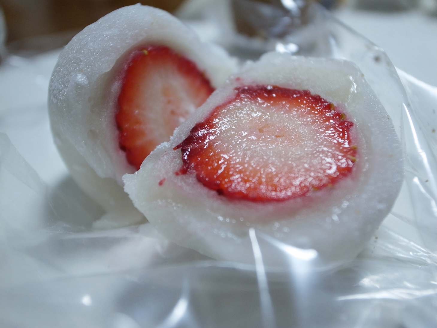 もちもちの中に白あんと新鮮なイチゴが入った 「もちイチゴ」です!!本当に美味すぎます。 |