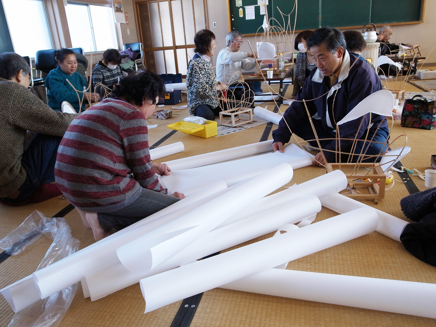 | この取り寄せたねぷたの和紙がみんなから評判が良いです。 紙の張り具合いがよくて丈夫になるんです。 早くあかりを入れるのが楽しみですね。 |