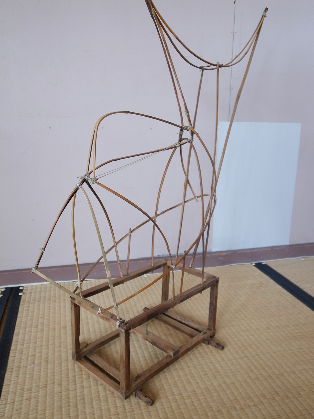 | そして、白根の鯛車の古い骨組みが発見されました。 巻のものに比べてスマートです。 時間を重ねた飴色の竹がなんとも美しいです! |