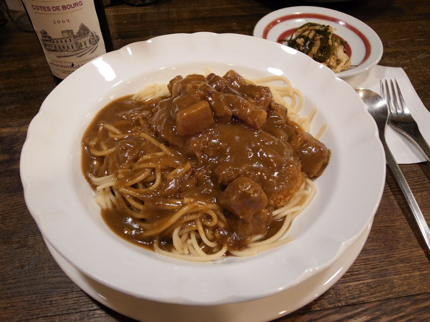 | 今日はカレースパゲッティをチョイス! 甘めのカレーに大きめのビーフが 美味しかったです。 |