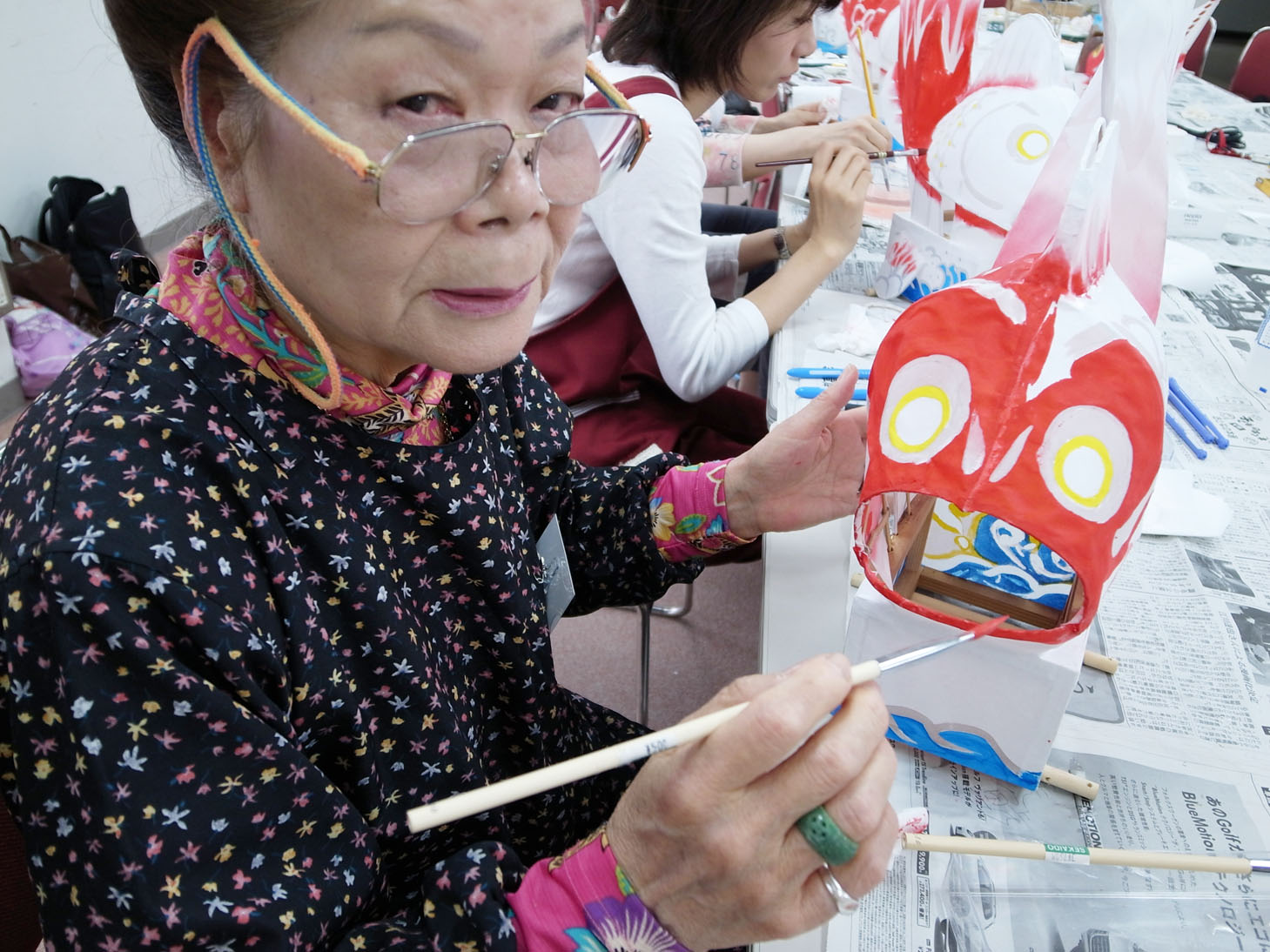 | だんだん鯛の形が見えてきましたね。 この方はキャンドルナイトで娘さんと 鯛車を引っ張る予定です! |