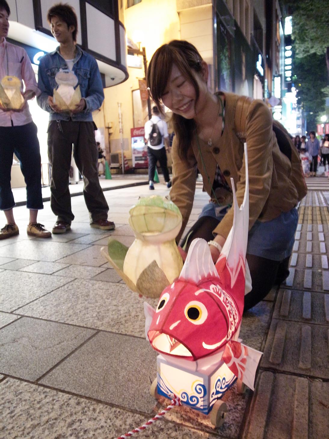 自分で作った鯛車を東京で引っ張れるなんて なかなかできないですよね。 しかも表参道ですよ! いつ見ても不思議な光景です。 |