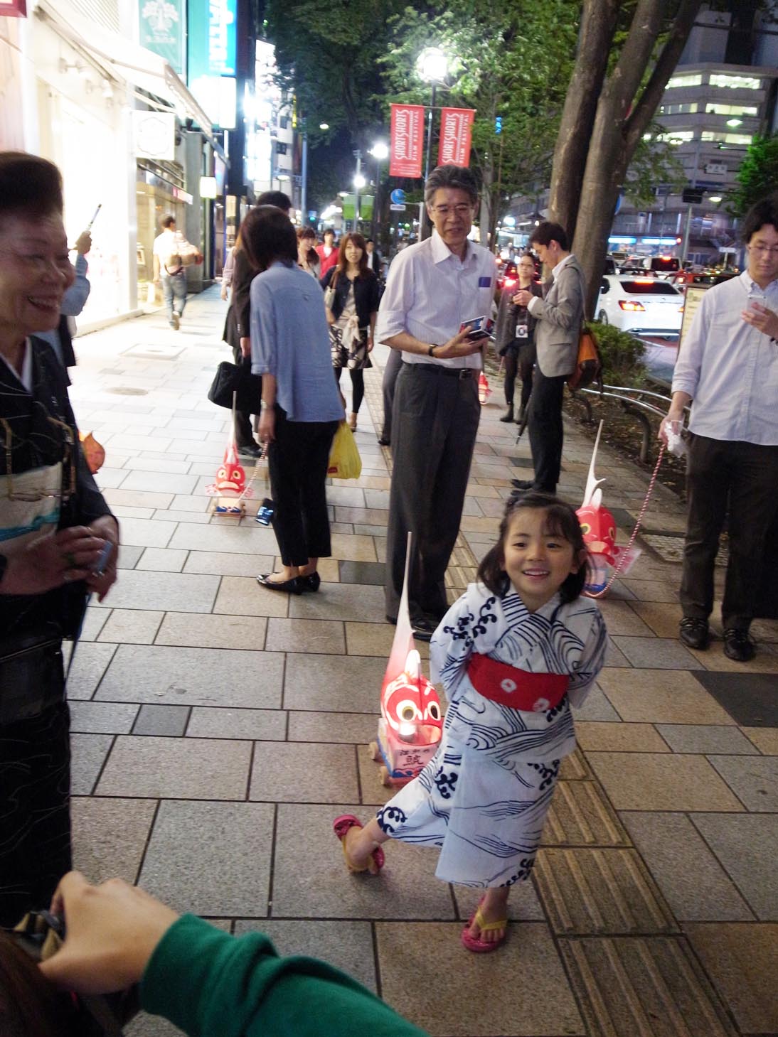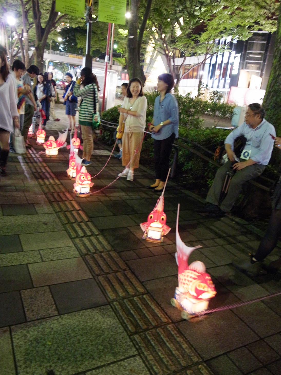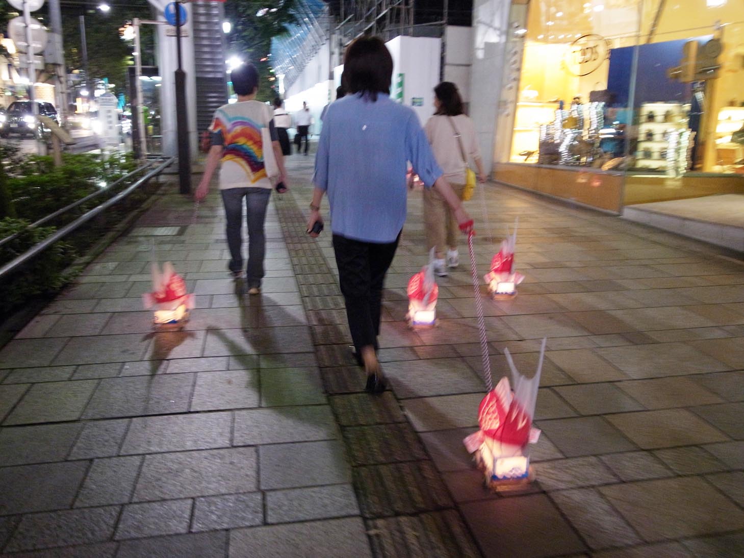 | 自分で作った鯛車を東京で引っ張れるなんて なかなかできないですよね。 しかも表参道ですよ! いつ見ても不思議な光景です。 |