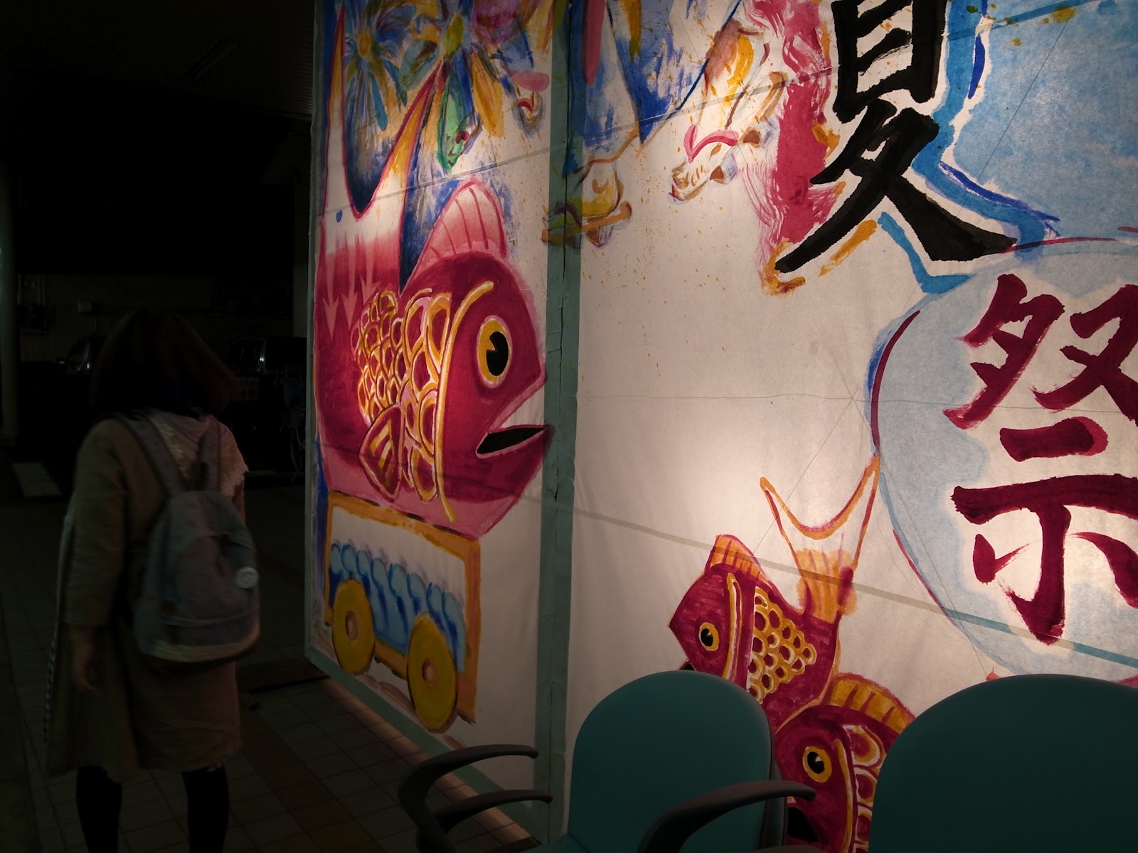 | 最後に集結した鯛車たちです。 ネスパスの方たちがテントを張ってくれて しかも、鯛車の説明のパネルも作ってくれました! ご協力ありがとうございました! |