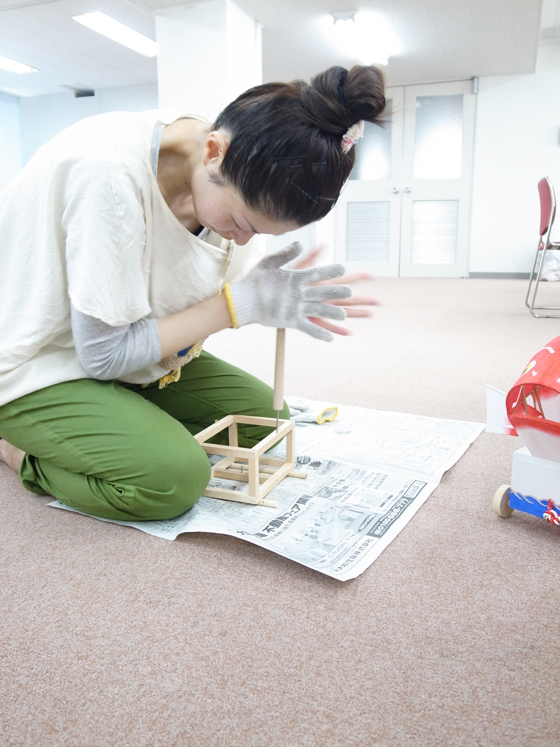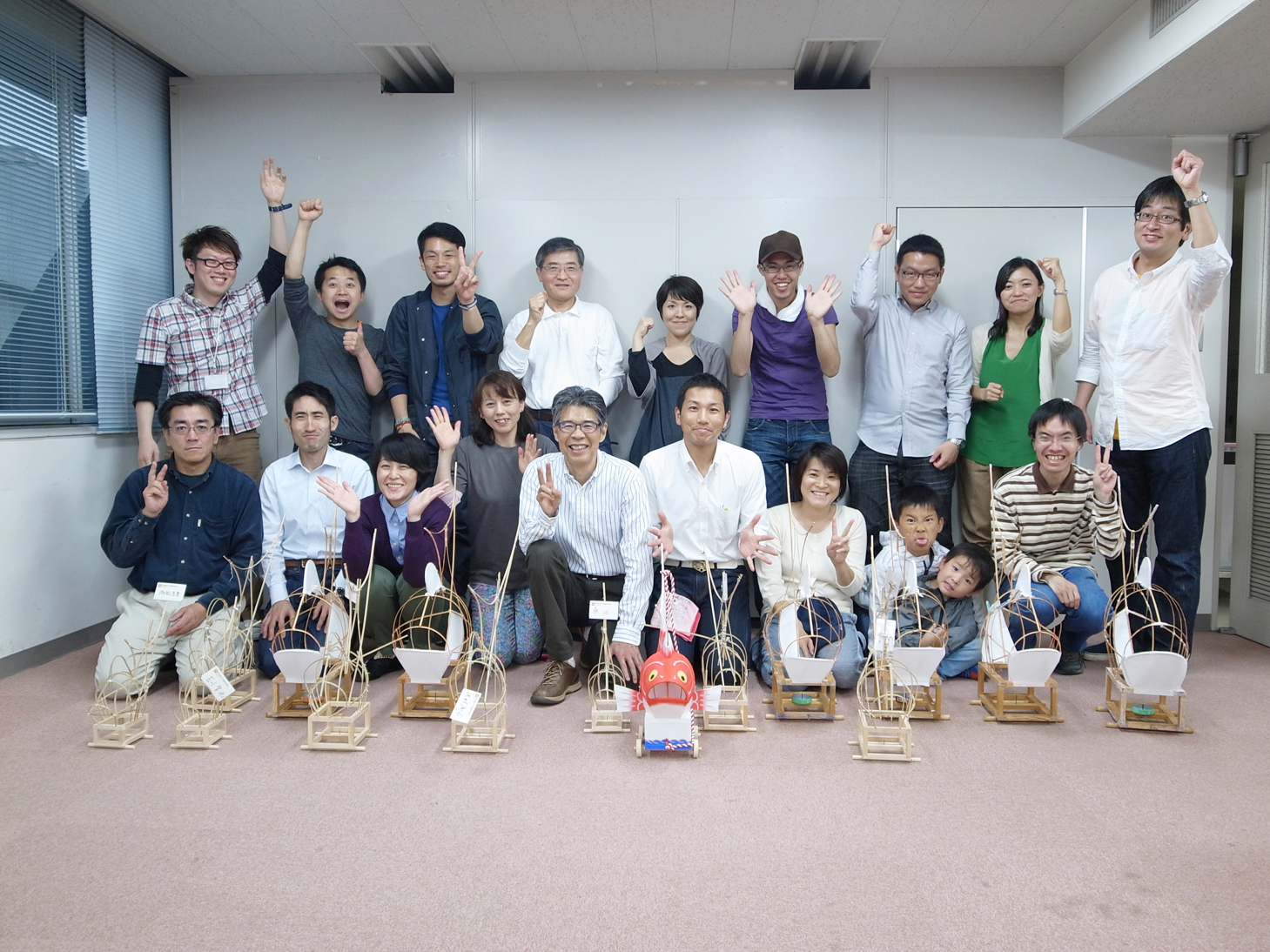 | 修復チーム頑張ってます! 全部で6台の鯛車を修復です。 |