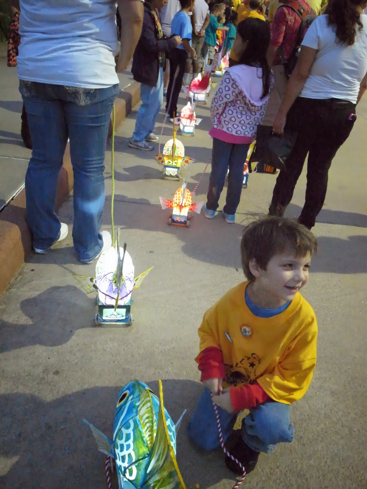 合唱が終ってもパレードはまだまだ続きます。 初めて見る鯛車に不思議そうな子ども。 |