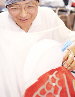 | 紙貼りのの難関といわれている尻尾にとりかかっています。 これを乗り越えれば完成が見えてきますね! |