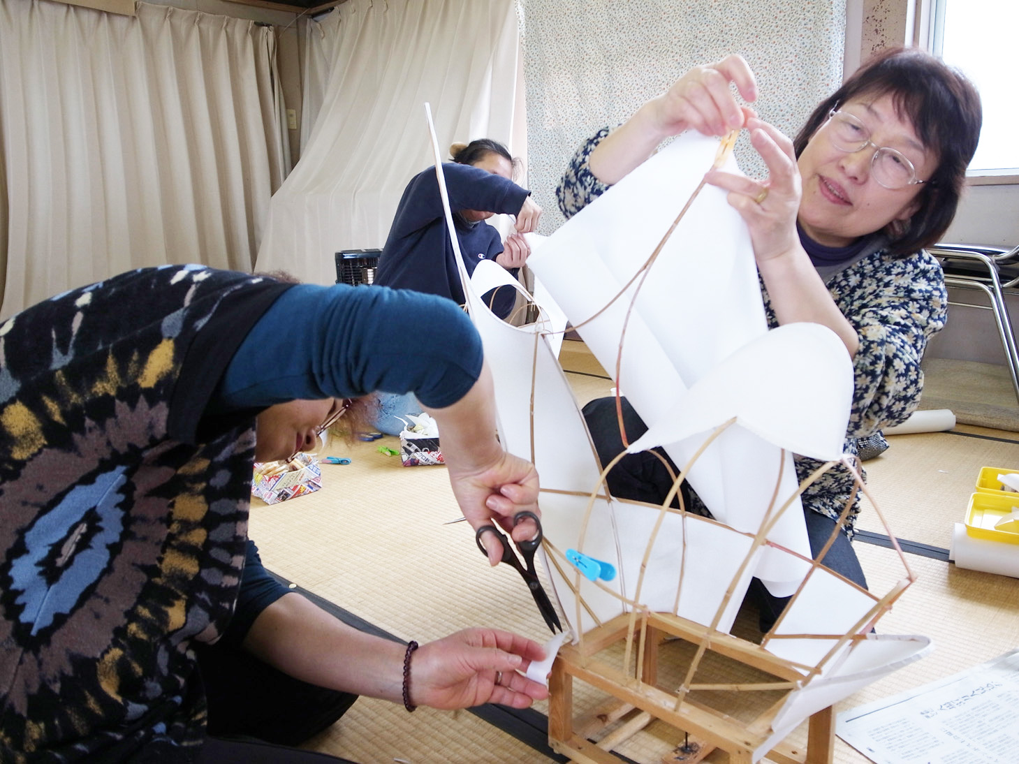 今日の午前はいつも通り鯛車の修復作業をしました。
