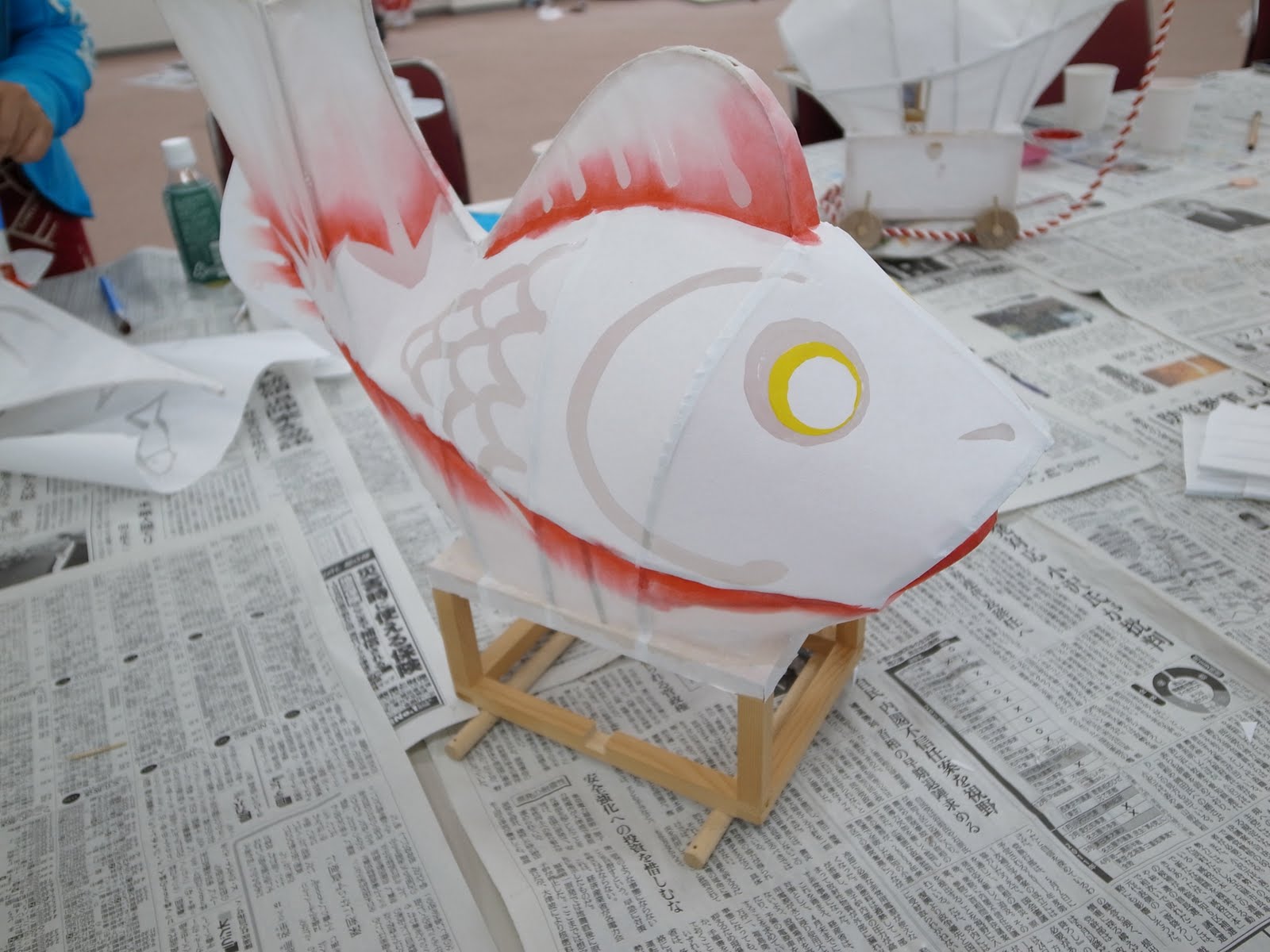 イベント当日にタイヤと引っぱるヒモを付けて完成させますのでご心配なく。