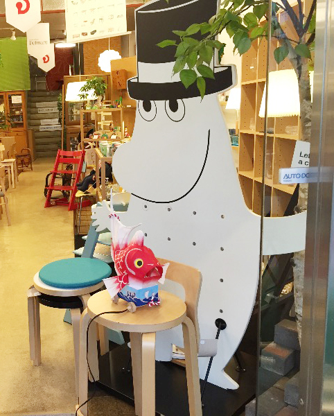 ムーミンと初コラボ(笑) お店のご好意で鯛車もパレードまで 置いてもらえることになりました! 販売もしています! |