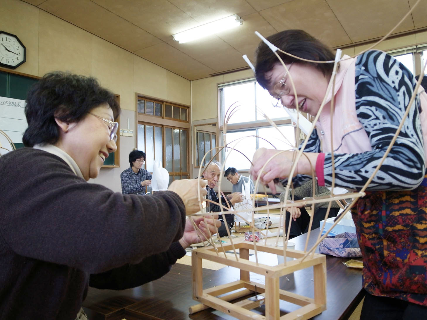 竹の骨組みを直してますね。 こちらのメンバー2人は仲良し兄弟です♪