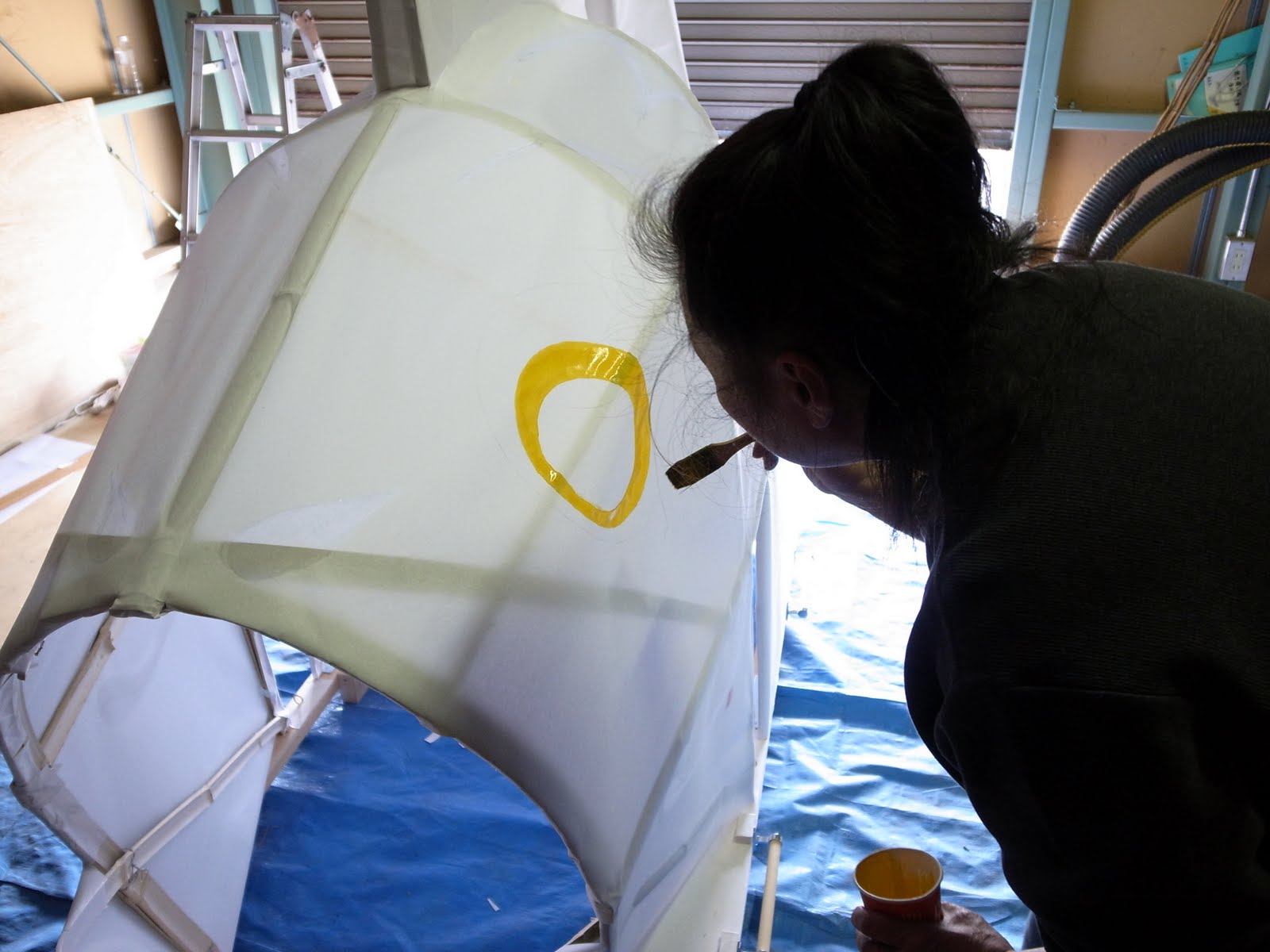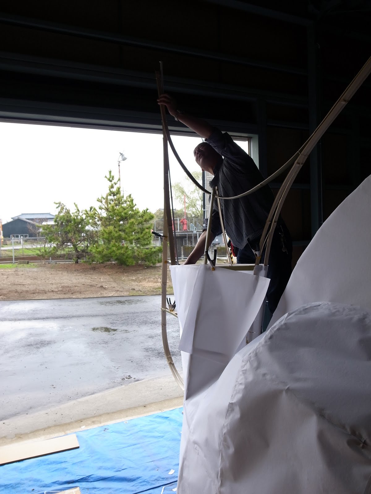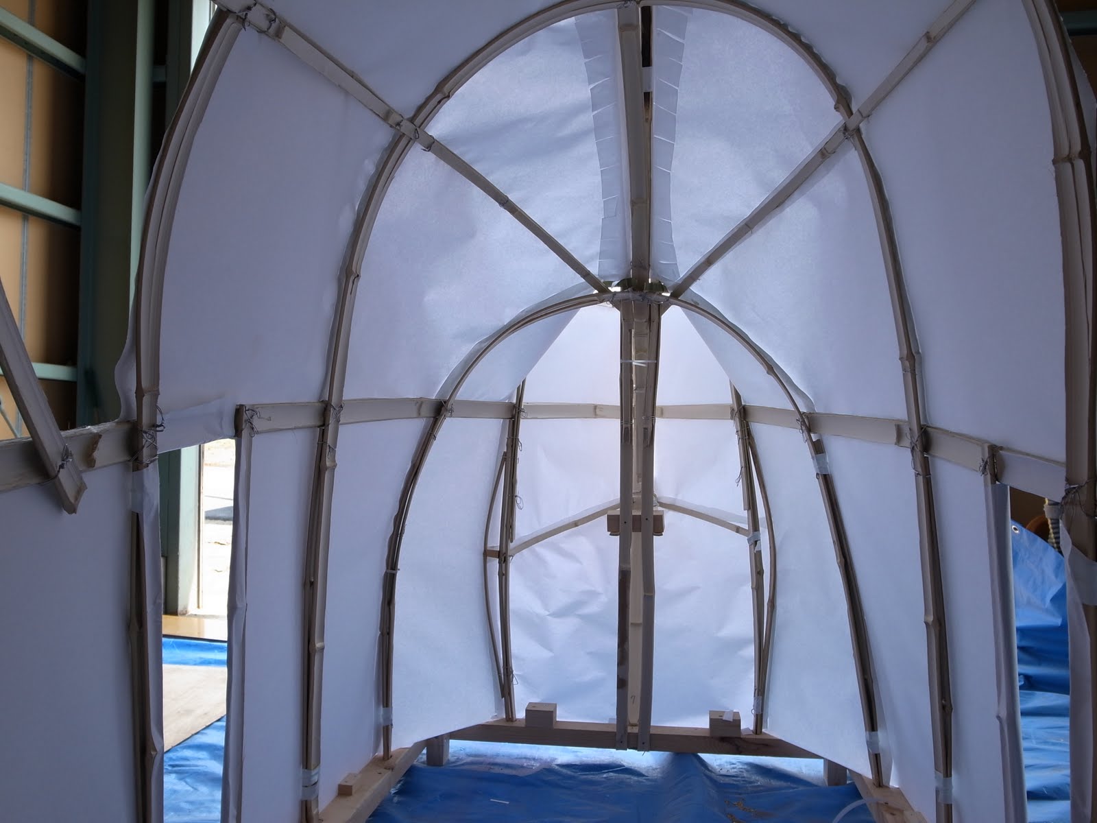 中から見ると自然光が和紙を通ってキレイです。 来月の半ばに地元の子どもたちと一緒に色を塗る予定です。 果たして間に合うでしょうか!? |