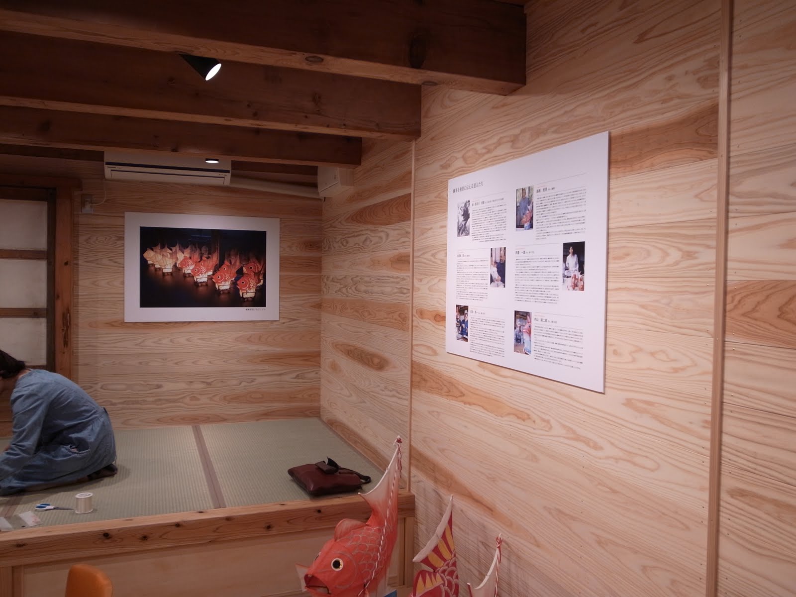 パネルも良い感じにつきました! 右が巻の6人の鯛車達人の紹介パネルです。 下に達人たちの鯛車がそれぞれ並ぶ予定です。 |