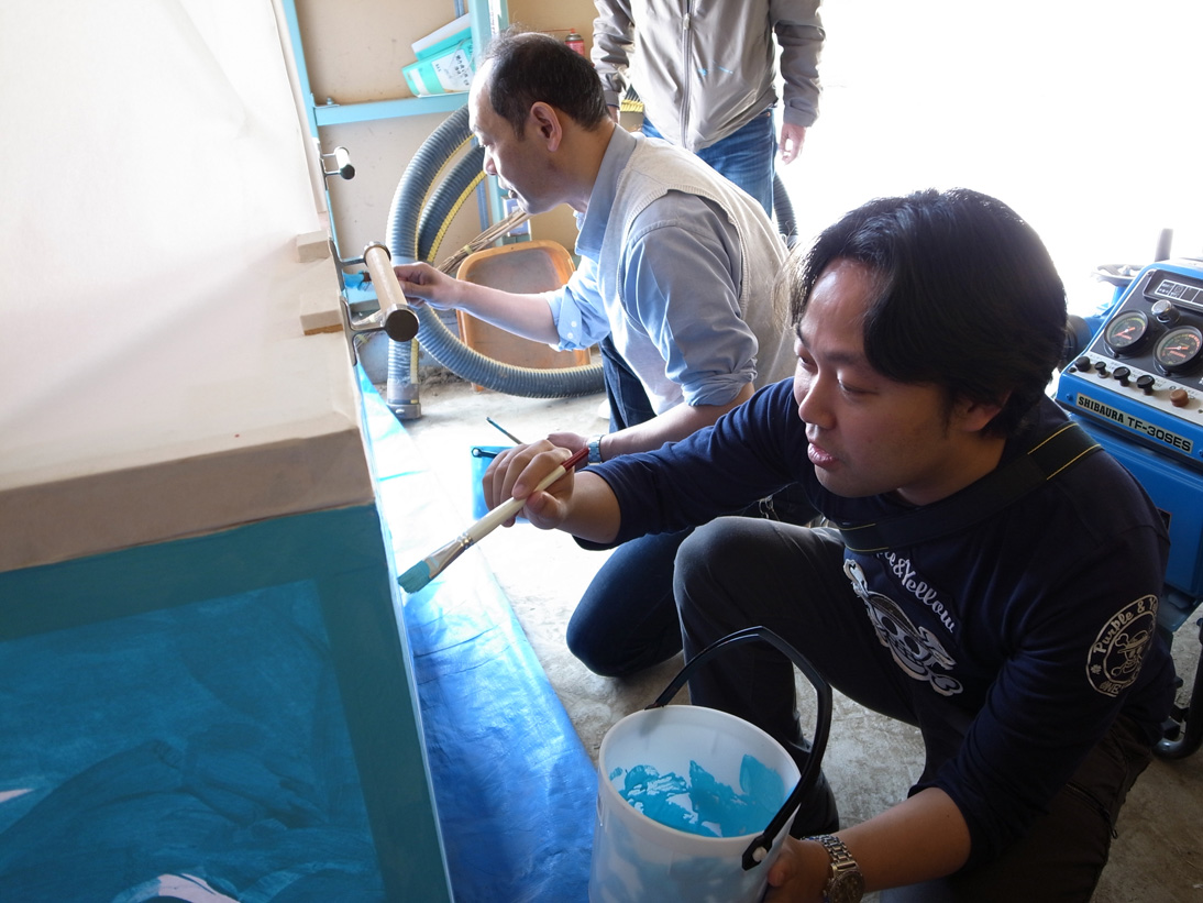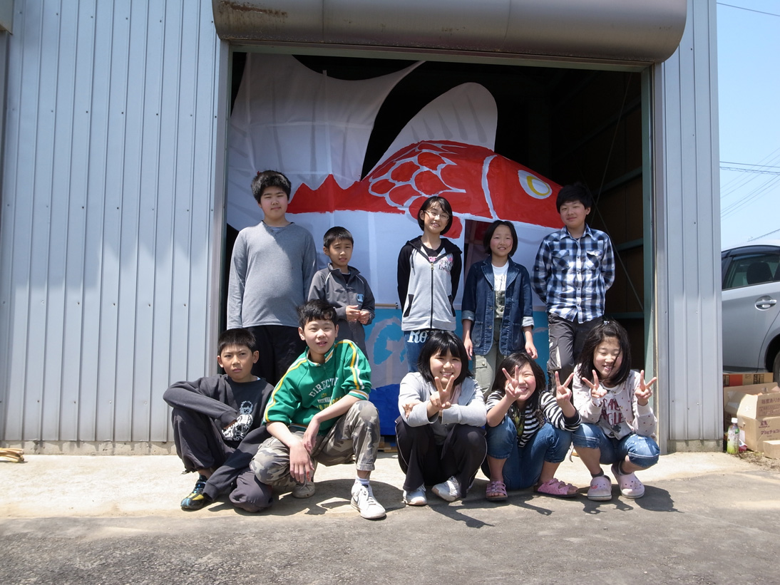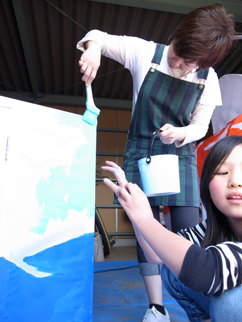 14日(土)に巨大鯛車の色付けを地元の子どもたちと一緒に行いました。