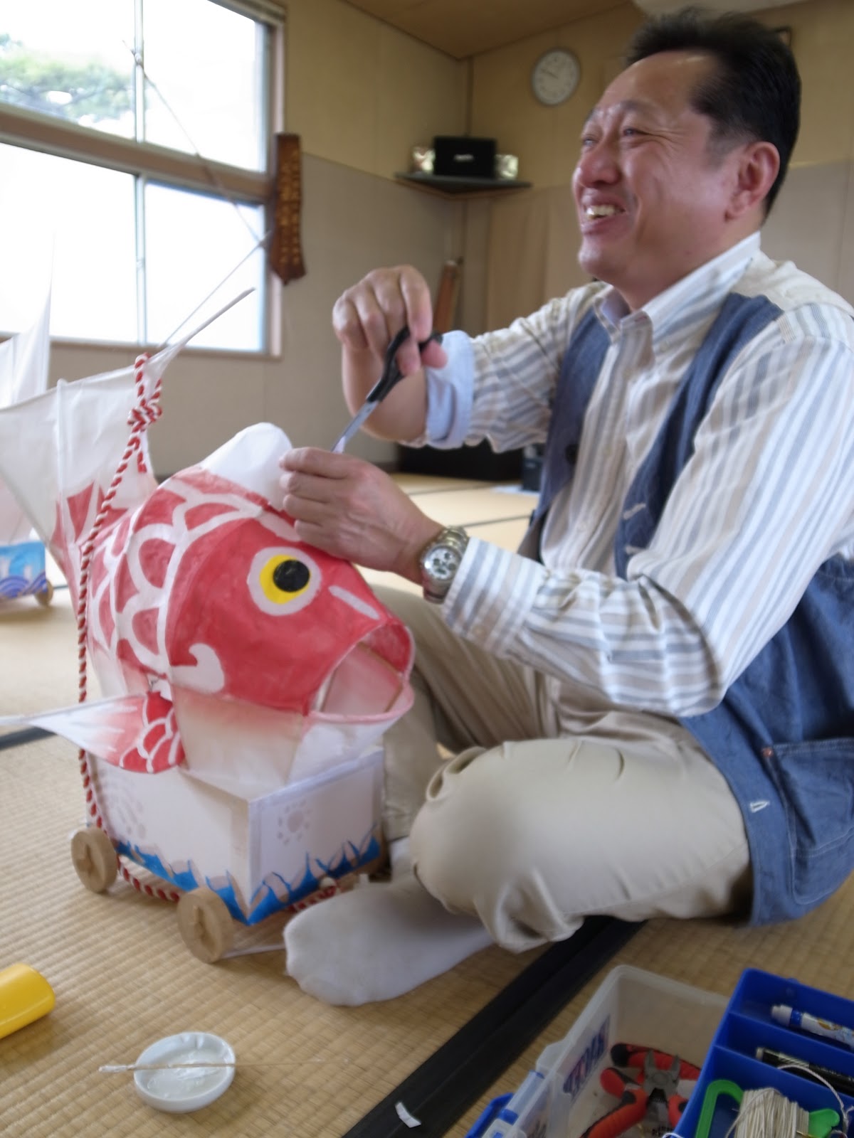 長嶋先生は小学校にも鯛車をおしえに行ってもらってます。 我がプロジェクトにはかかせない人です! |
