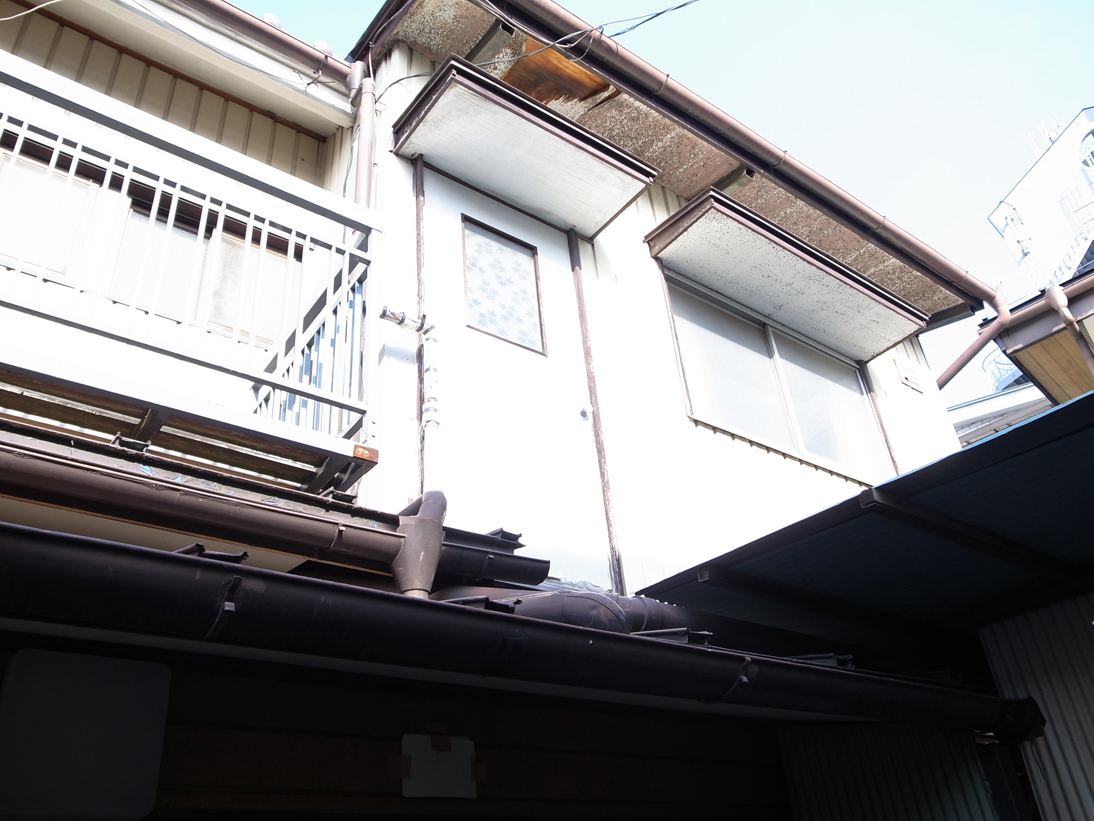 | ここが会場がです!なんと普通の家です! しかもなぜ2階に入り口が!? どうやら昔、手前の家と廊下で繋がってたようです。 |