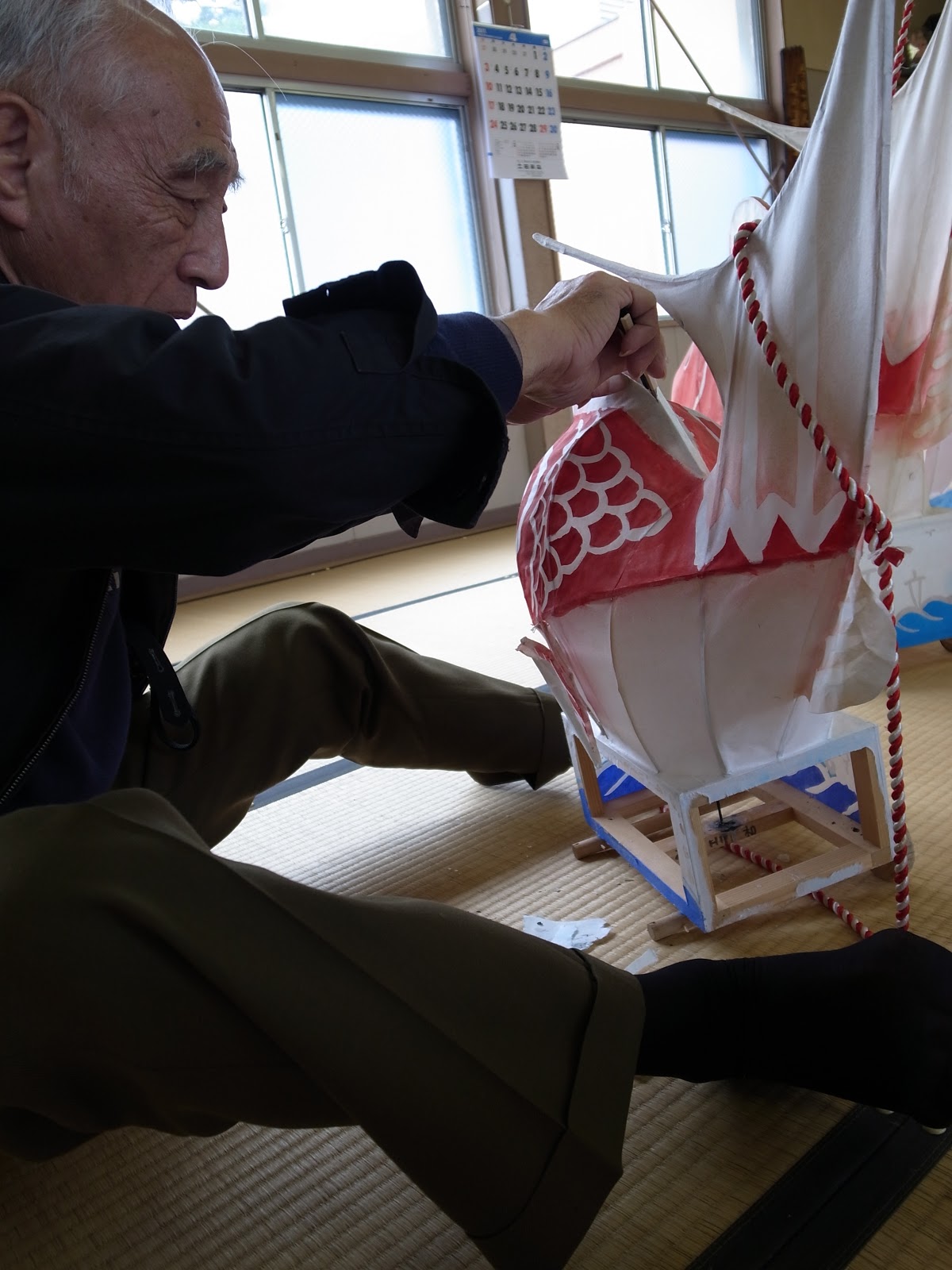 日曜は修復作業、ジャンボ鯛車、鯛の蔵、浜メグリと