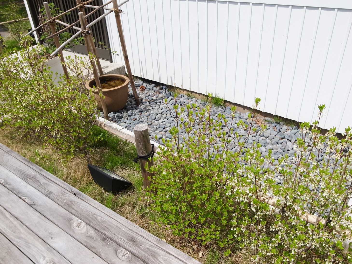 | 蔵の前のドウダンツツジの花も咲きはじめました。 |